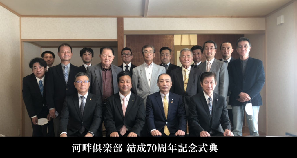 令和2年11月14日、南部町にて河畔倶楽部結成70周年記念式典を開催致しました。陶山町長、土江副町長、景山町議会議長様のご臨席を賜り、またOBの皆様方と共に楽しい時間を過ごさせて頂きました。