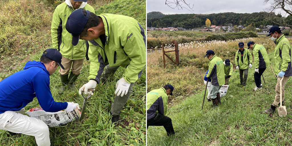 11月の作業は試験木に肥料をやる作業を行いました。肥料の与え方については知見のある嶋田会員から参加会員にレクチャーがあり、試験木の周りに穴を掘って肥料を与えました。